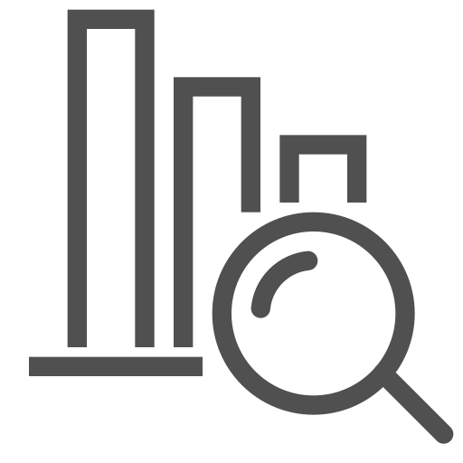 outline simple icon: analysis, analytics, bar chart, data, magnifying glass