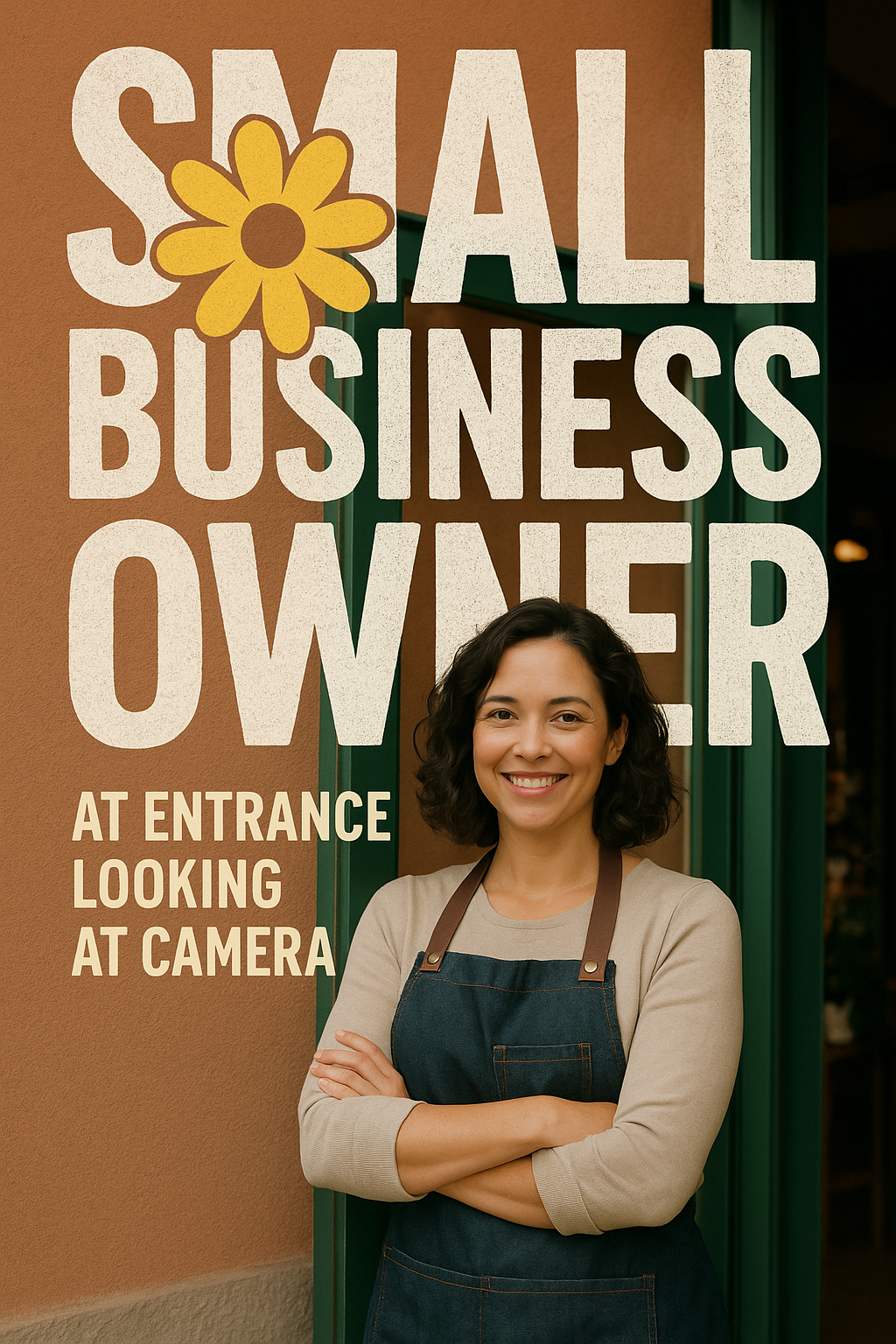 /Collection: /by davooda/Type: PNG/A welcoming portrait of a small business owner standing at the entrance of their shop, exuding confidence and warmth. Ideal for promotional materials and business-related content.