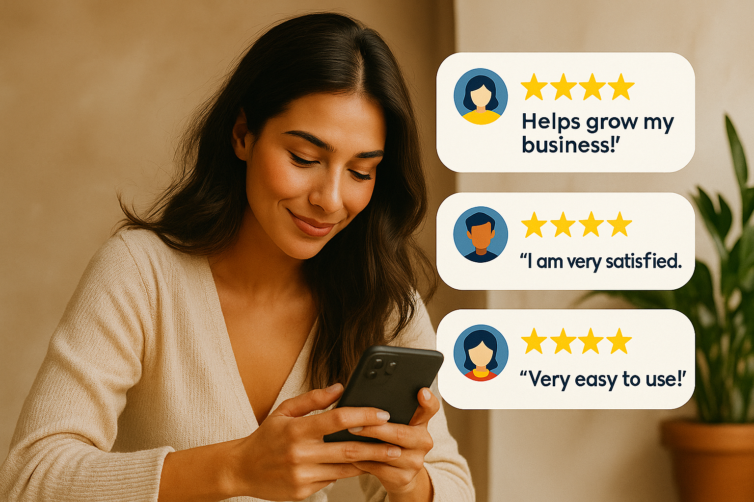 Customer Satisfaction Promotional Graphic Featuring Positive Reviews