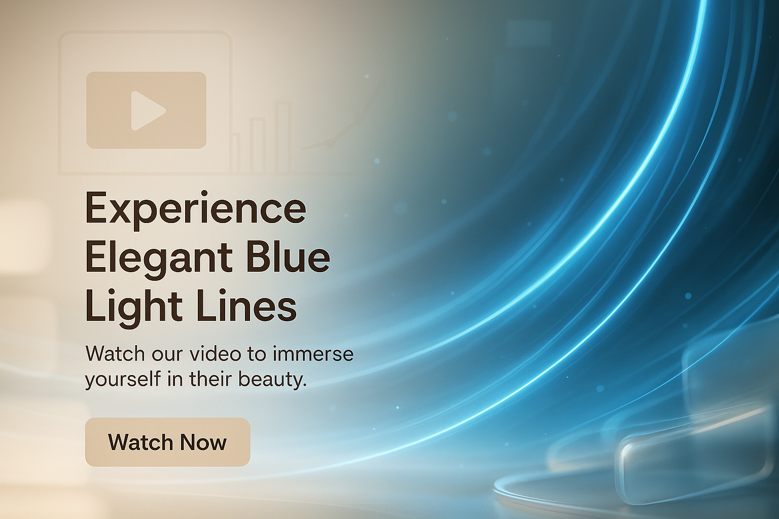 Promotional graphic featuring elegant blue light lines with a modern design, ideal for video content engagement and attracting viewers.
