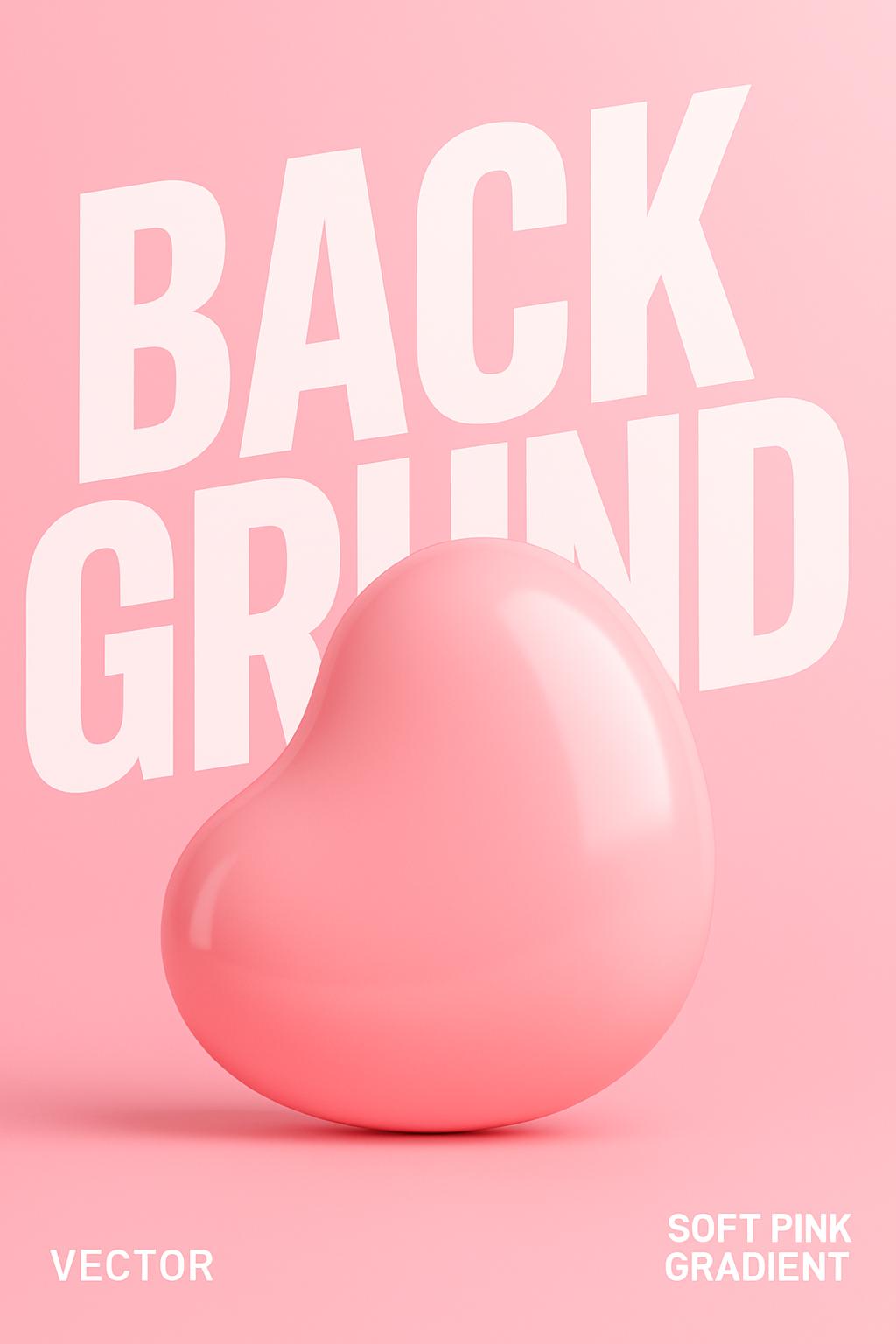 /Collection: /by davooda/Type: PNG/A captivating soft pink gradient background features a glossy, hyper-realistic object partially in front of bold, oversized text. The composition balances vibrant colors and minimalistic design.
