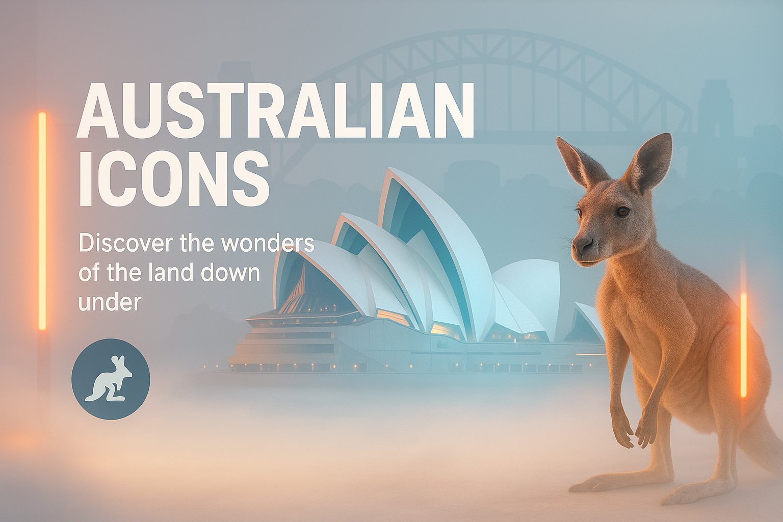 Promotional Graphic Featuring Australian Icons and Wildlife