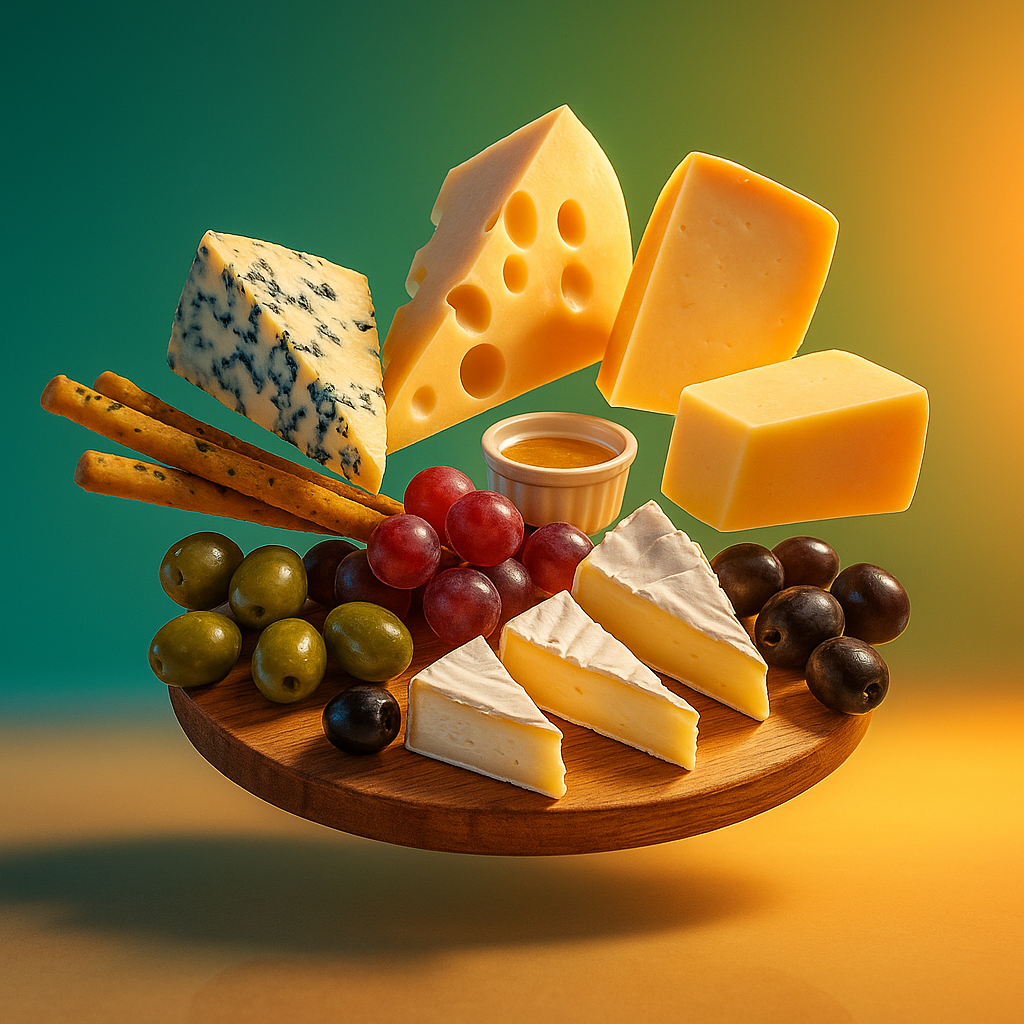 Realism Cheese Platter with Dynamic Lighting and Composition