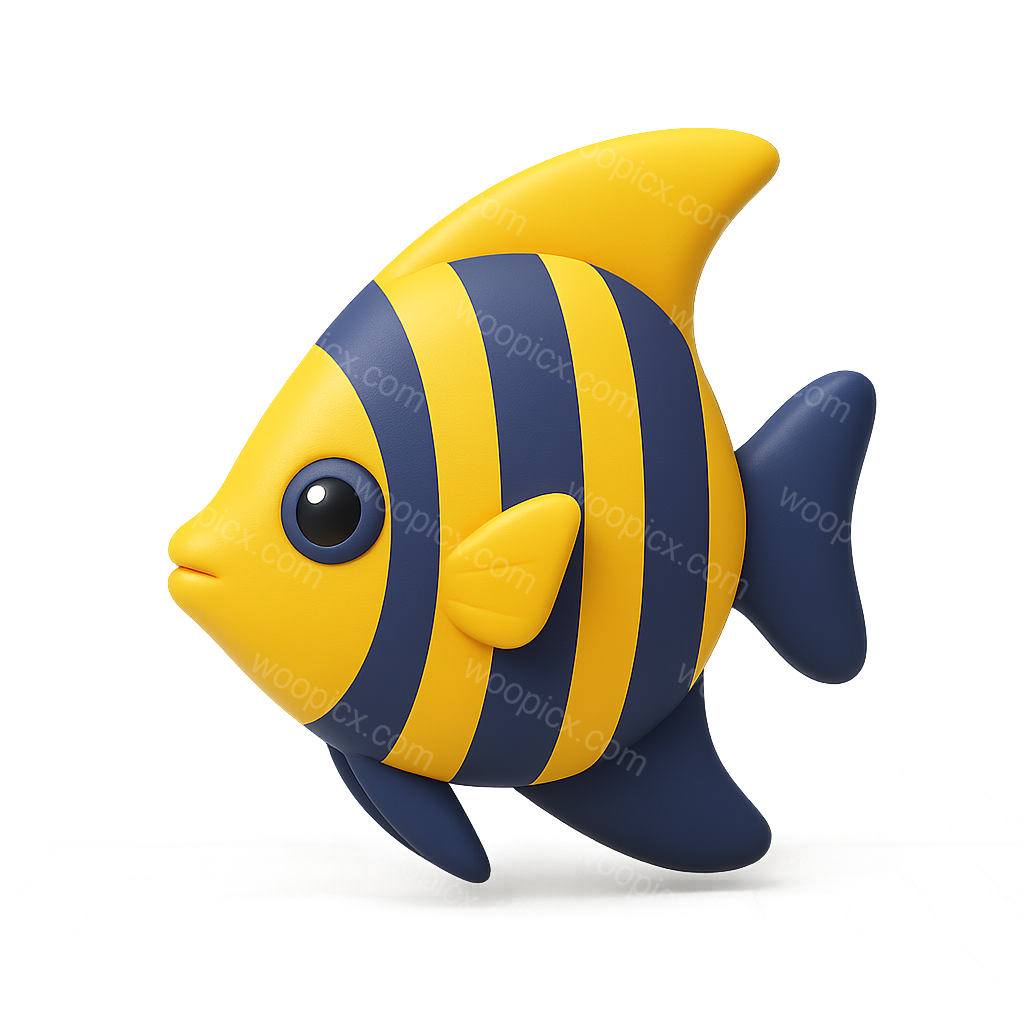 A vibrant 3D angelfish icon featuring bold yellow and blue stripes. The fish is depicted in a three-quarter view, showcasing its volumetric design and smooth textures against a soft gradient background.