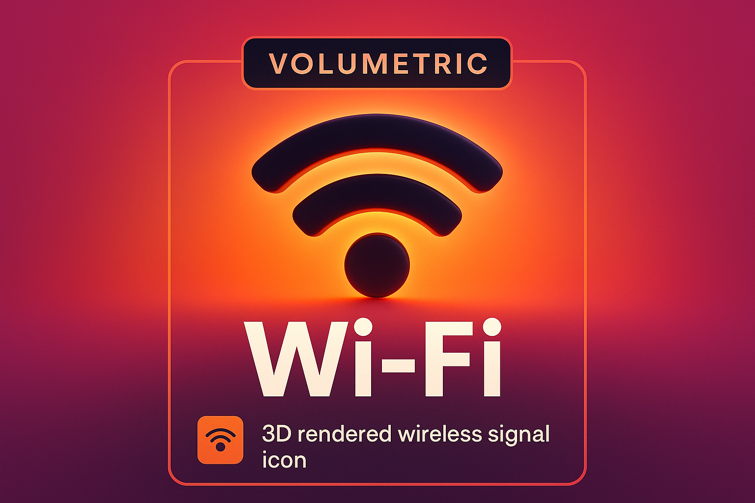 This is a digital graphic featuring a 3D rendered Wi-Fi signal icon with a volumetric style on a gradient background, suitable for tech-related content or applications.