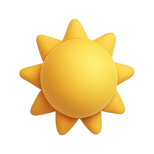 A vibrant, playful sun icon featuring a round central body and pointed rays, designed in a cheerful yellow color. Suitable for use in weather apps, children's content, or summer-themed graphics.