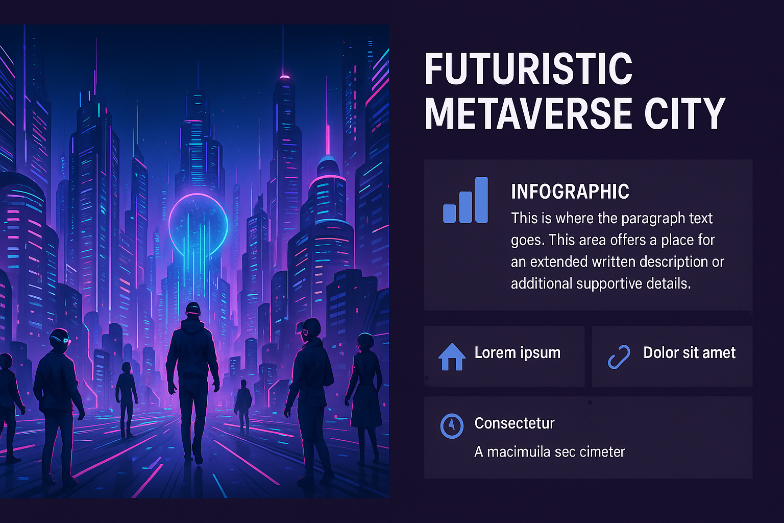 A visually striking infographic featuring a futuristic cityscape with neon lights and silhouettes of people, ideal for tech and gaming presentations.