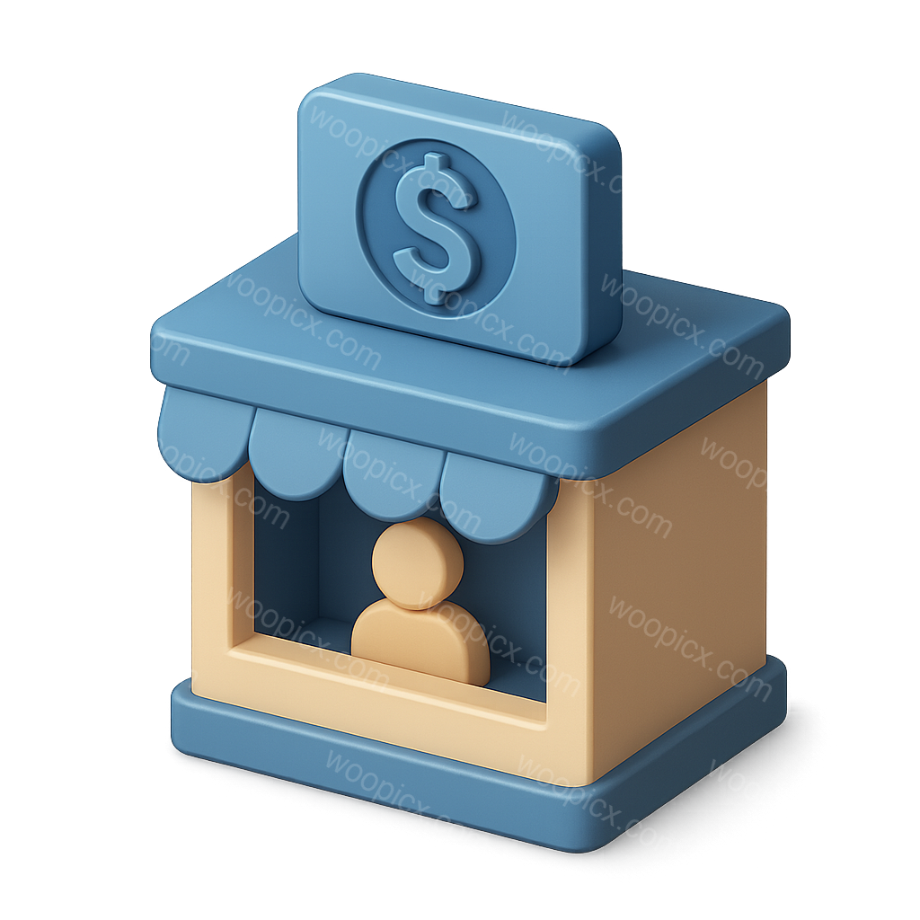 Stylized 3D Bank Teller Icon with Isometric Design