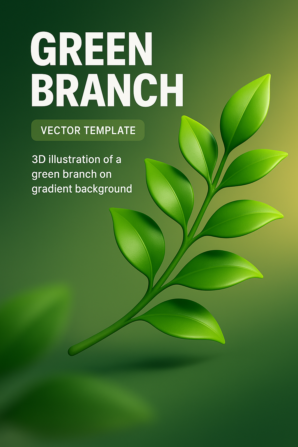 This is a vector graphic featuring a 3D illustration of a green branch on a smooth gradient background, suitable for nature-themed designs.