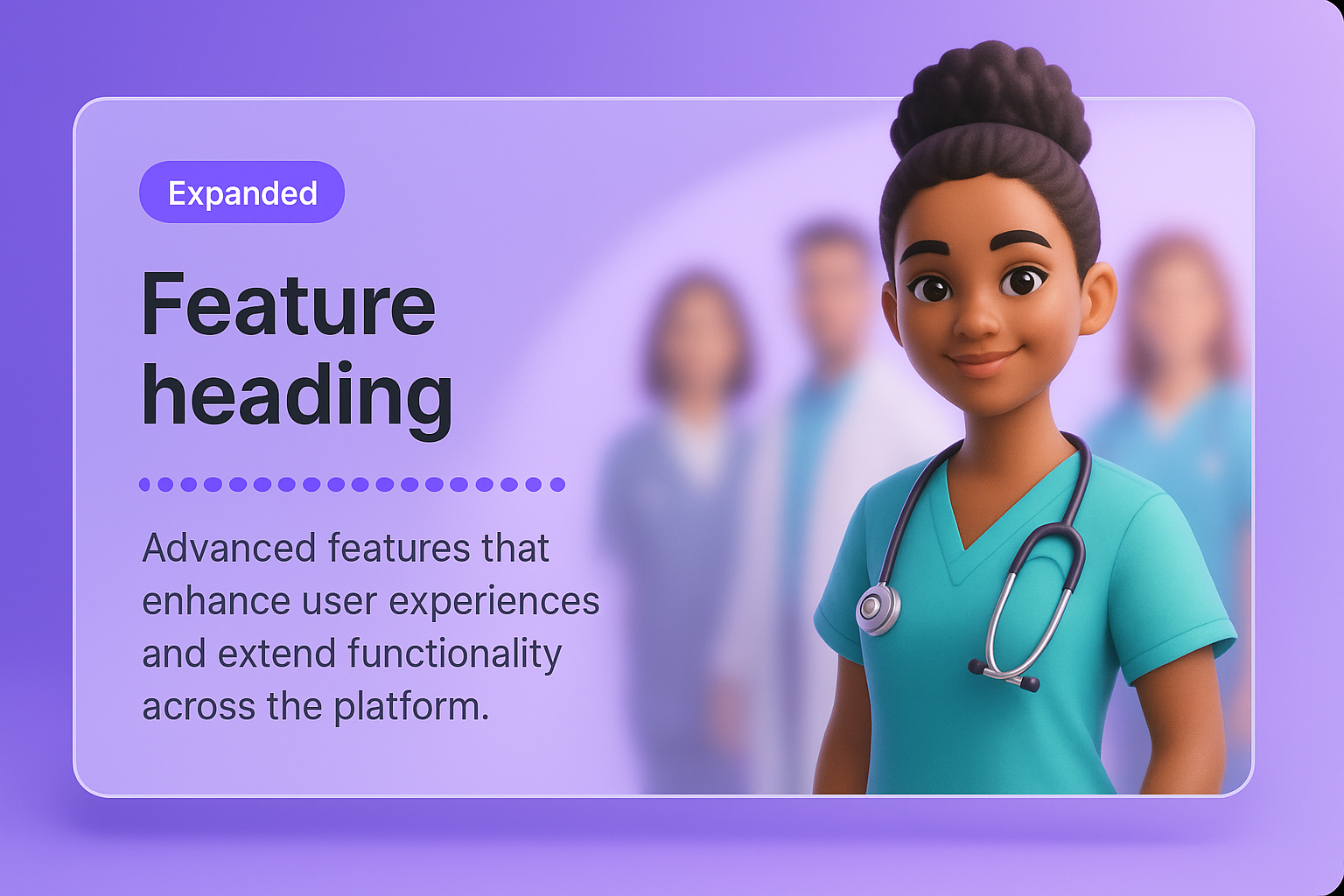 /Collection: /by davooda/Type: PNG/A vibrant portrait of a young nursing student in scrubs, standing confidently with her medical team in a hospital. The background features a blurred view of healthcare professionals.