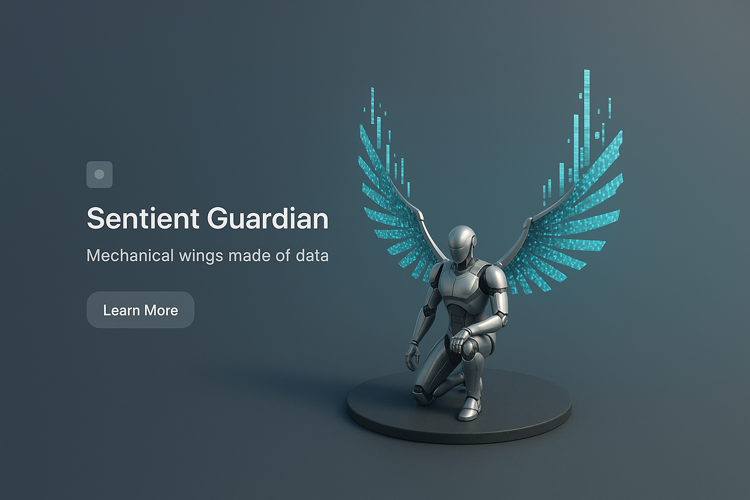 Sentient Guardian with Mechanical Data Wings in 3D Scene