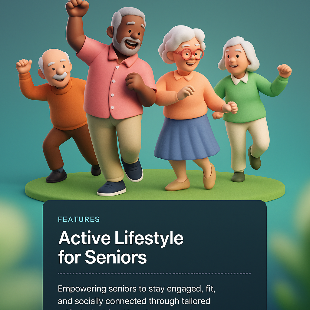 /Collection: /by davooda/Type: PNG/A lively group of seniors dancing with joy, showcasing their vibrant energy and companionship. The image highlights their active lifestyle in retirement, embodying the spirit of vitality.