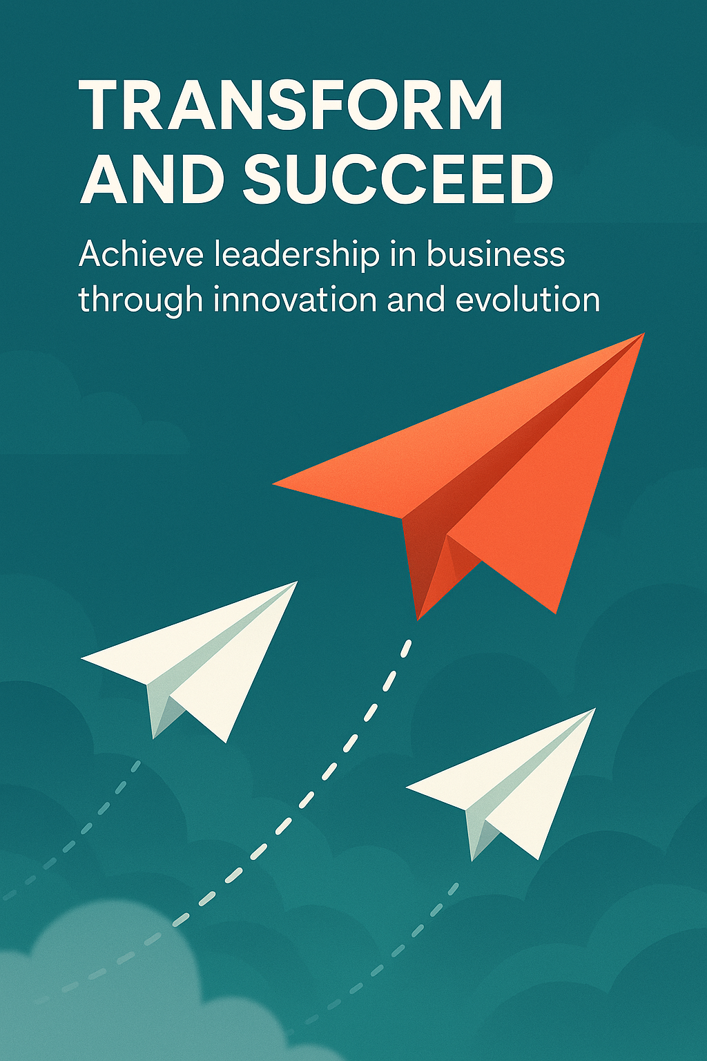 /Collection: /by davooda/Type: PNG/A modern graphic illustrating the theme of business transformation and leadership, featuring paper airplanes against a gradient background, ideal for corporate presentations or motivational materials.