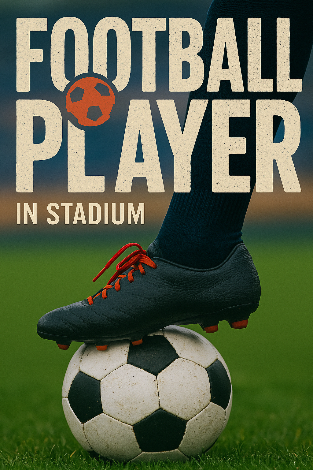 Football Player in Action with Soccer Ball in Stadium Setting