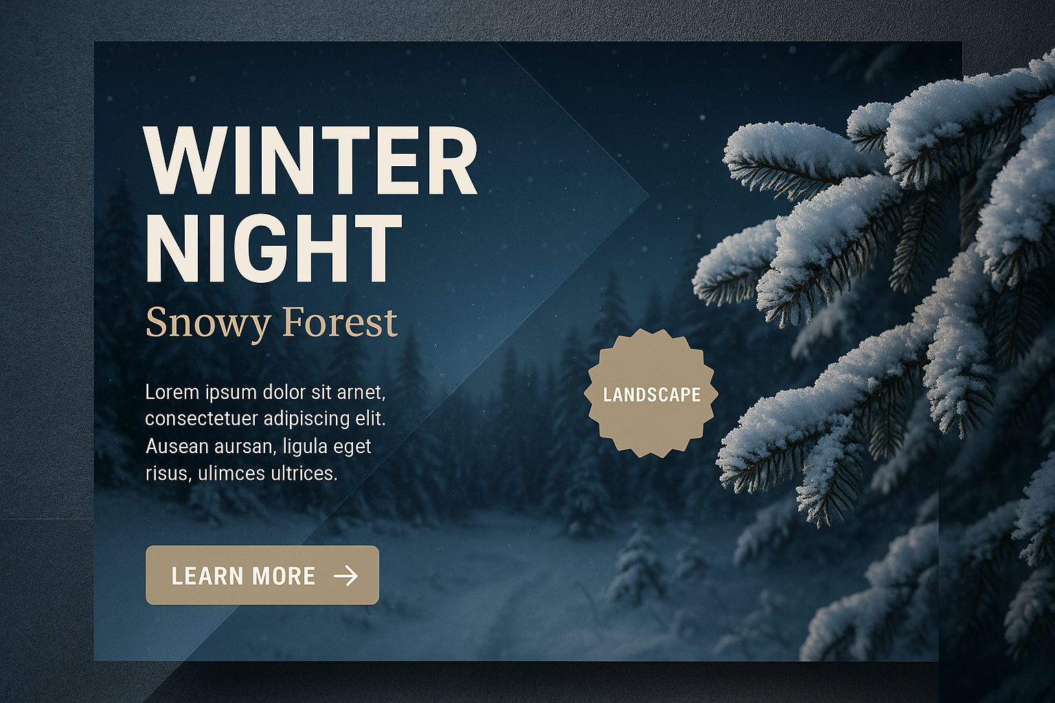 /Collection: /by davooda/Type: PNG/A serene winter night landscape featuring a snowy forest. Fir branches are dusted with snow, creating a tranquil atmosphere. The design includes a clear hierarchy and engaging elements.