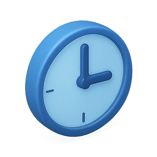 A modern 3D icon of a blue clock, featuring a minimalistic design suitable for digital interfaces and applications. Ideal for representing time management or scheduling.