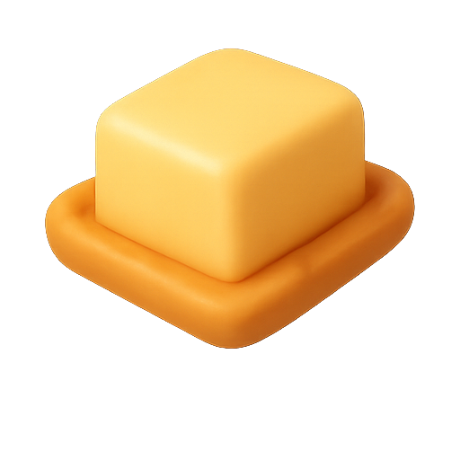 A realistic 3D rendering of a butter block placed on a circular plate, showcasing smooth textures and vibrant colors, ideal for food-related designs and culinary presentations.