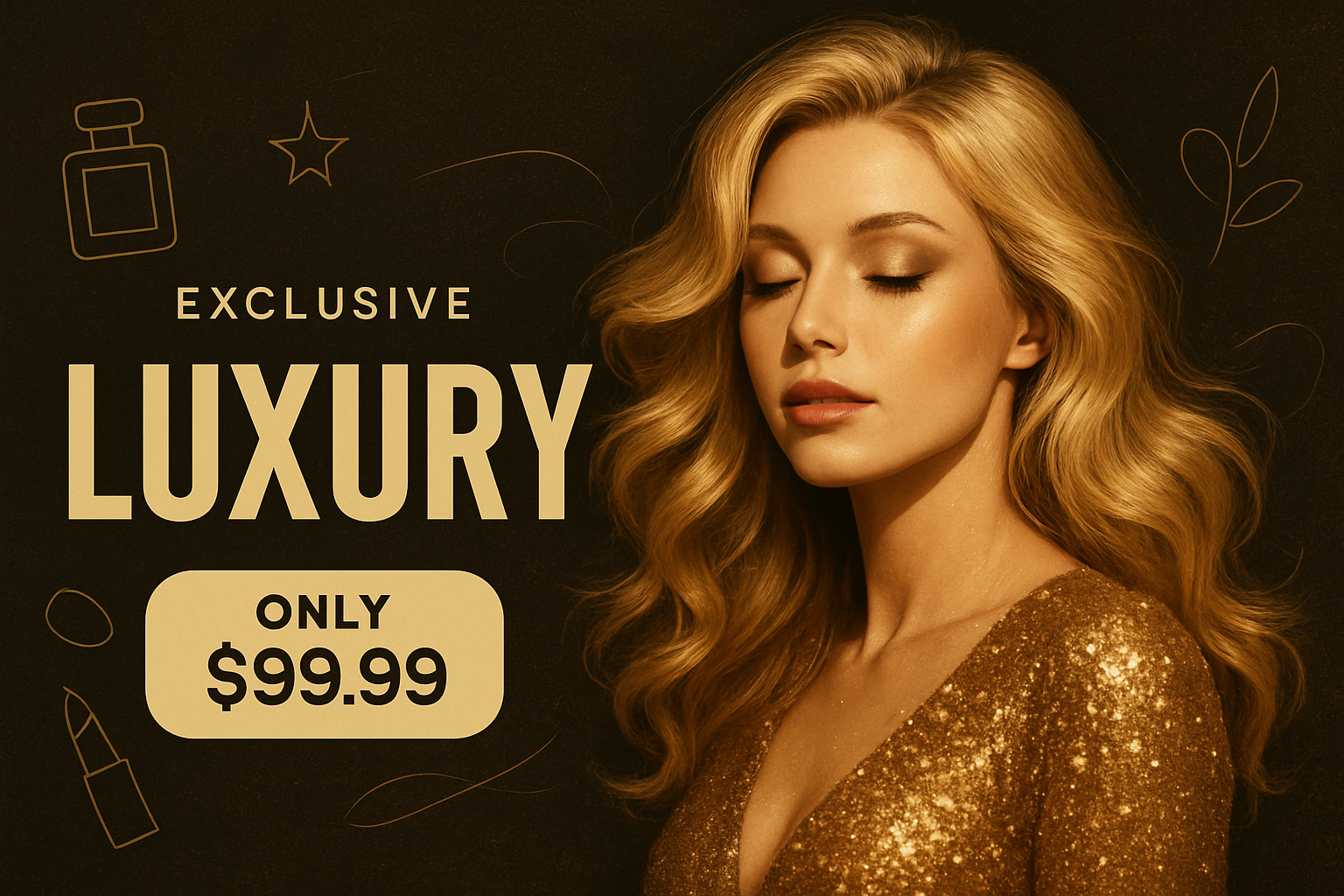 Elegant Golden Ad Featuring Luxurious Fashion and Beauty