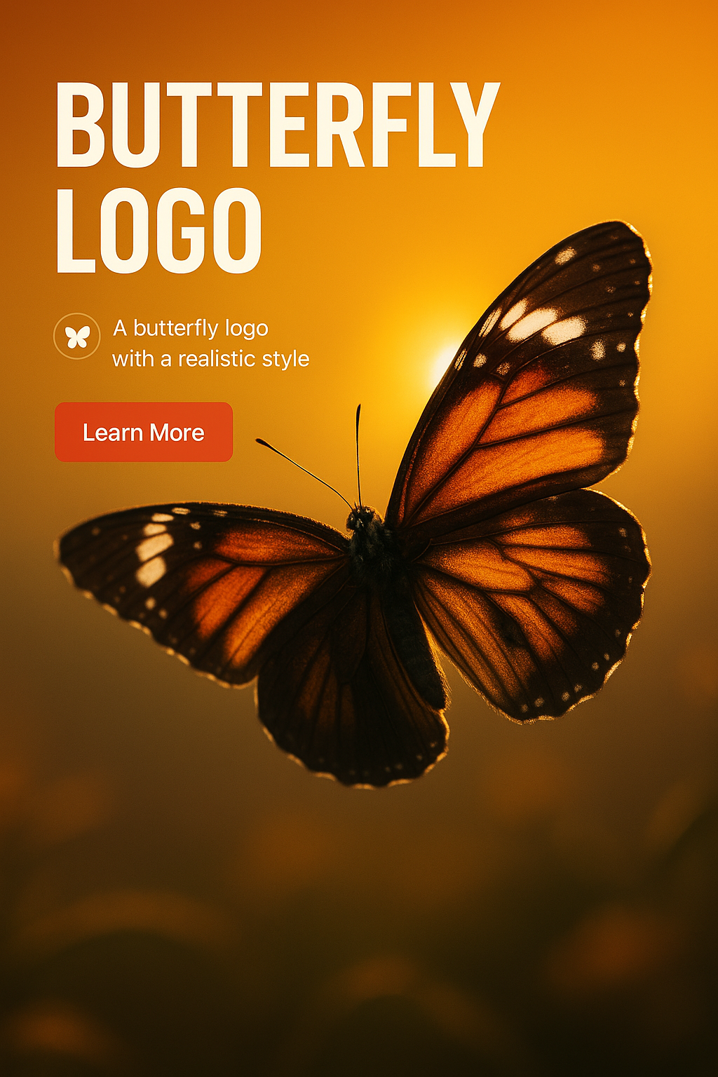 /Collection: /by davooda/Type: PNG/This image features a realistic butterfly logo set against a warm, orange background. It's designed for promotional use, ideal for branding or marketing materials.