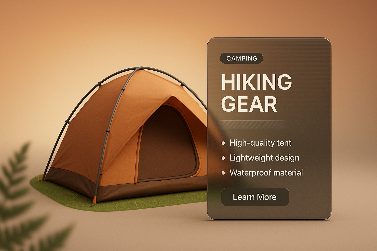 3D Tent Illustration with Dark Panel for Camping Gear Promotion