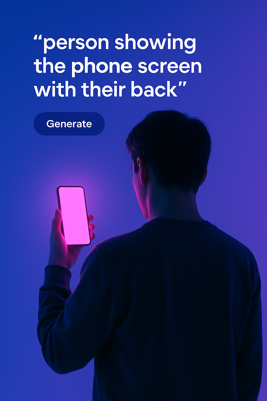 /Collection: /by davooda/Type: PNG/A person is depicted from the back, showcasing a phone with an intense neon-pink glow. The composition features a solid blue background, enhancing the glowing effect and creating a vibrant atmosphere.