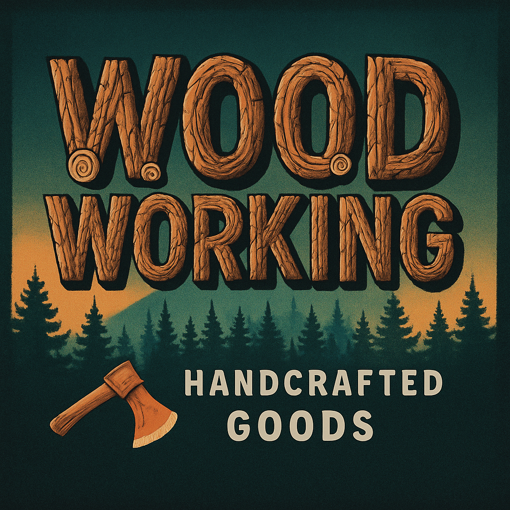 /Collection: /by davooda/Type: PNG/A visually striking graphic showcasing the theme of woodworking, featuring rustic typography and an axe. Ideal for promoting handcrafted goods in craft markets or online stores.