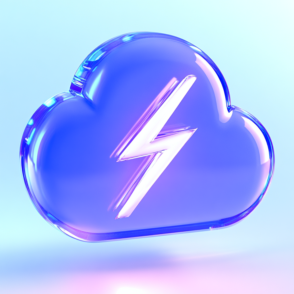 A modern and vibrant cloud icon featuring a lightning bolt, suitable for tech-related projects, digital applications, or weather-related content.