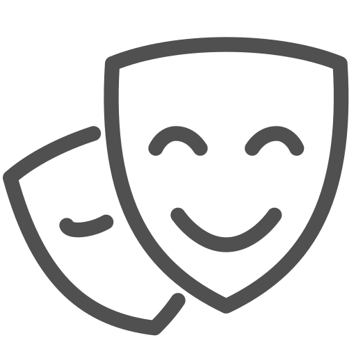 outline simple icon: arts education, comedy, drama, masks, performing arts