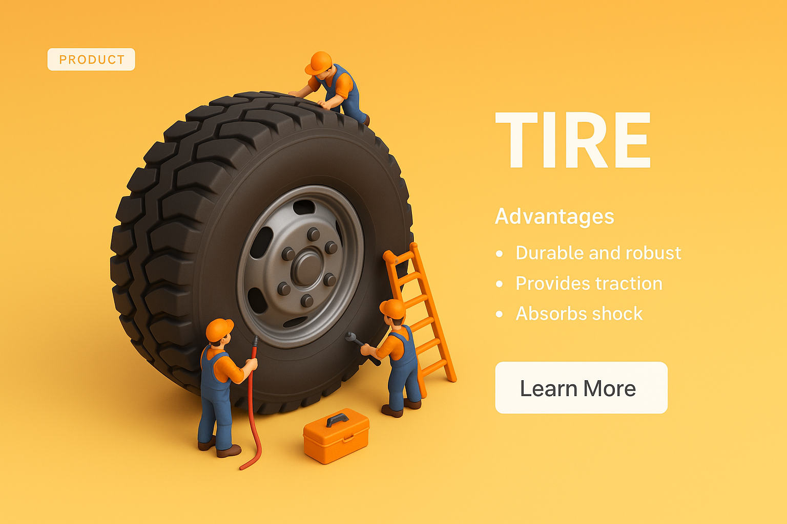 /Collection: /by davooda/Type: PNG/A vibrant 3D illustration showcasing a large tire with tiny figures performing tasks around it. The background features a smooth gradient, enhancing the focus on the tire and the engaging activities of the miniature workers.