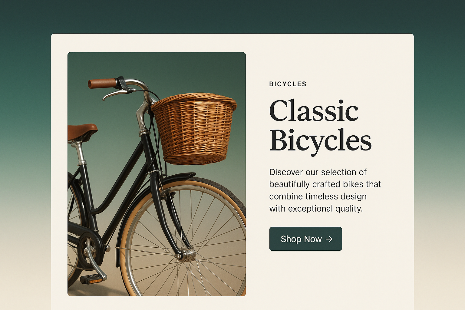 An elegant web design layout showcasing a classic bicycle with a woven basket. The design features a two-color gradient background, enhancing the visual appeal.