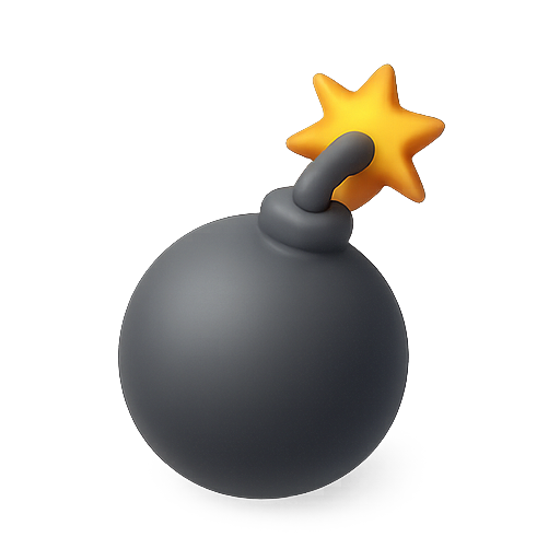 A playful and stylized cartoon bomb graphic featuring a gray spherical body and a bright yellow star. Ideal for gaming, messaging apps, or creative projects.