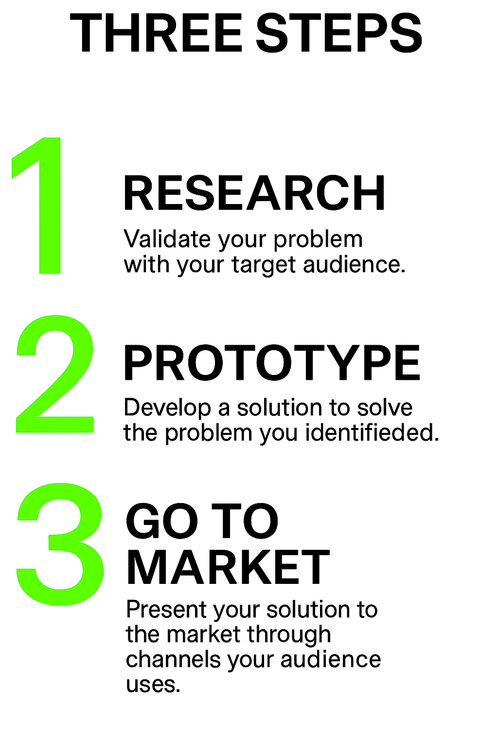 Informative infographic outlining a three-step process for market strategy, featuring bold typography and a clean design, ideal for educational or business presentations.