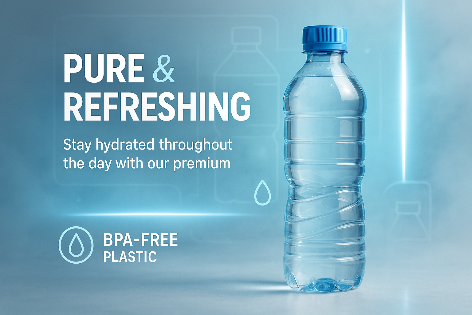 Promotional Image of a Plastic Water Bottle with Hydration Theme