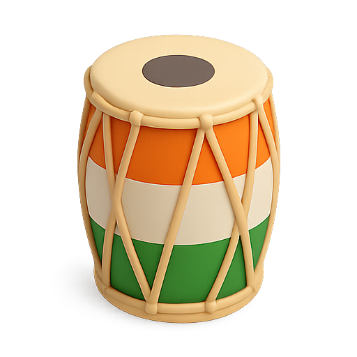 /Collection: /by davooda/Type: PNG/A vibrant 3D illustration of a traditional Indian drum featuring orange, white, and green stripes, symbolizing national pride. Suitable for cultural or musical themes.