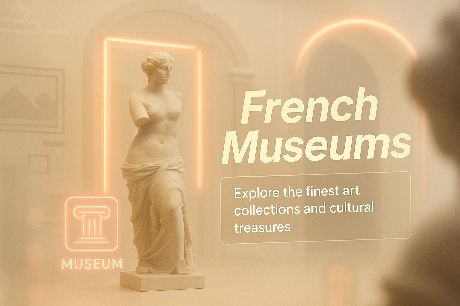 /Collection: /by davooda/Type: PNG/Modern promotional graphic showcasing a statue in a museum setting, designed to attract art enthusiasts. The soft color palette and lighting create an inviting atmosphere, ideal for cultural marketing.