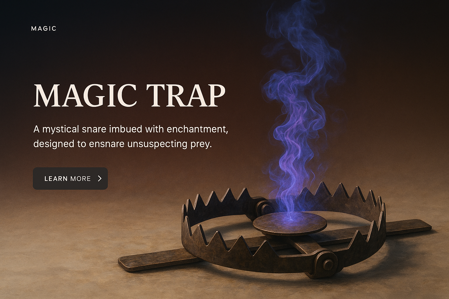 A captivating illustration of a magic trap with an enchanting purple mist. It features a layered composition with a gradient background, emphasizing realism and style for web use.