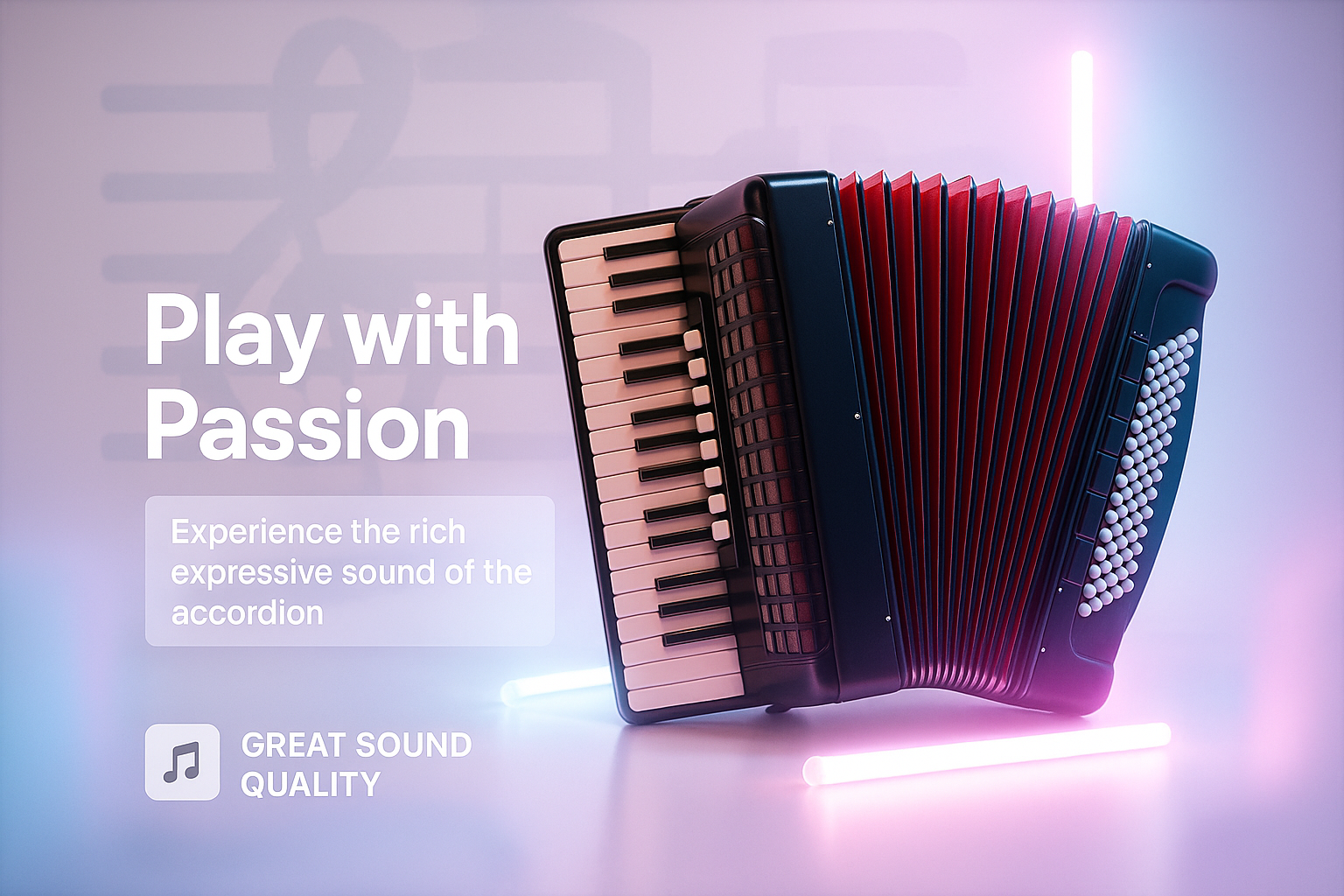 Promotional Graphic Featuring Accordion with Modern Design Elements