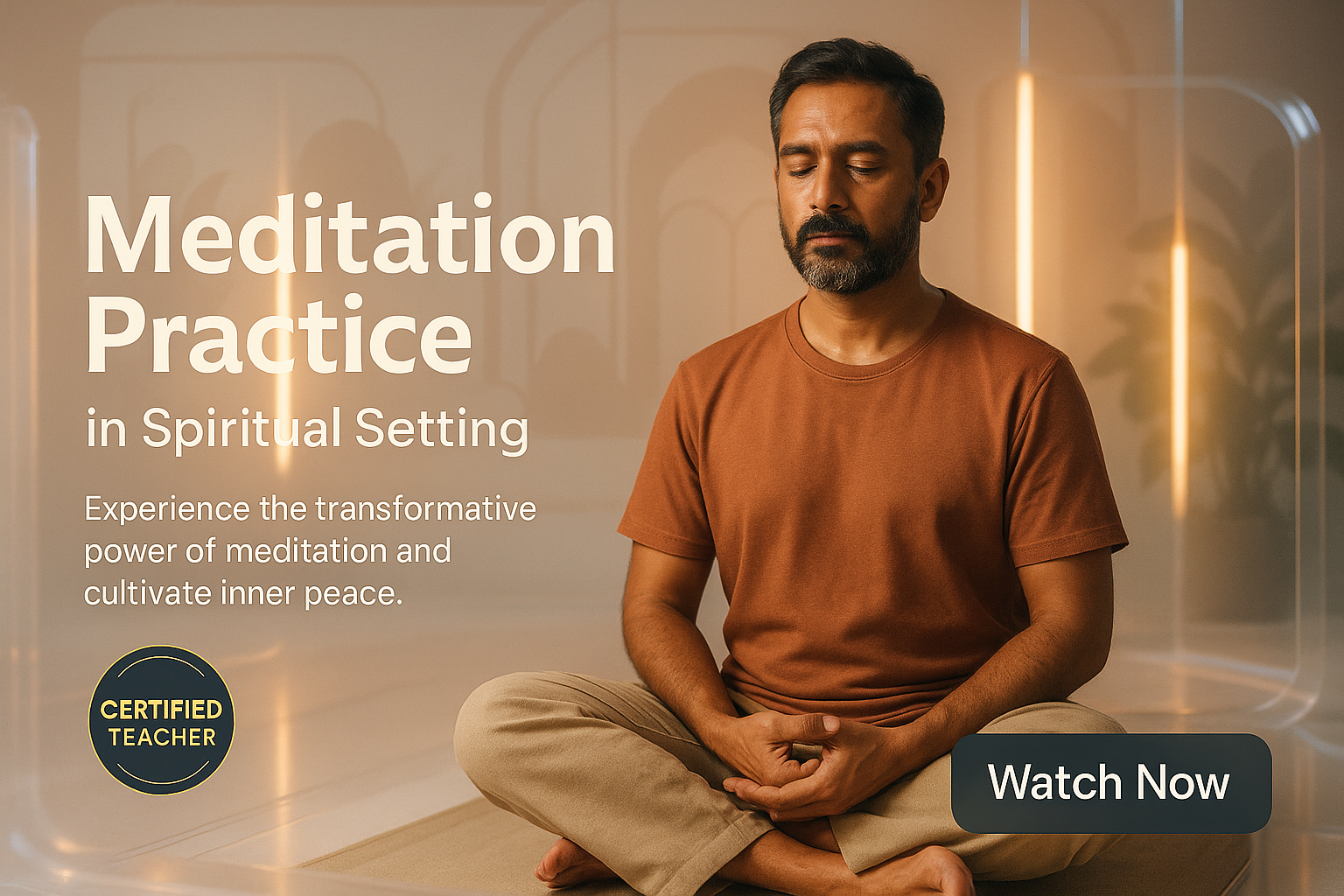 Promotional image for meditation practice featuring a serene setting and a meditating individual, designed to attract those seeking inner peace and mindfulness.