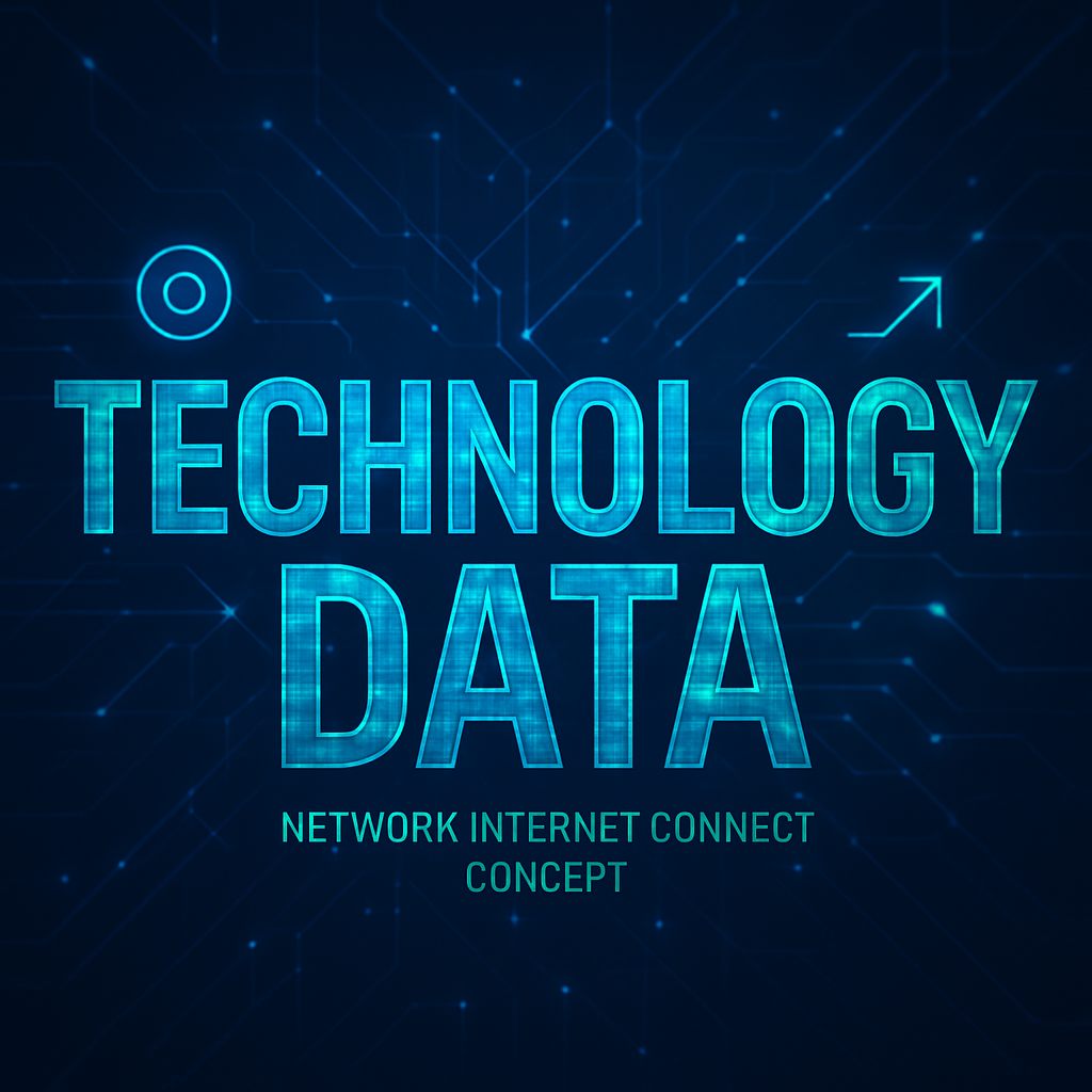 /Collection: /by davooda/Type: PNG/Modern graphic showcasing the concept of technology and data with a digital circuit design. The bold typography and blue tones create a high-tech feel, suitable for presentations or tech-related content.