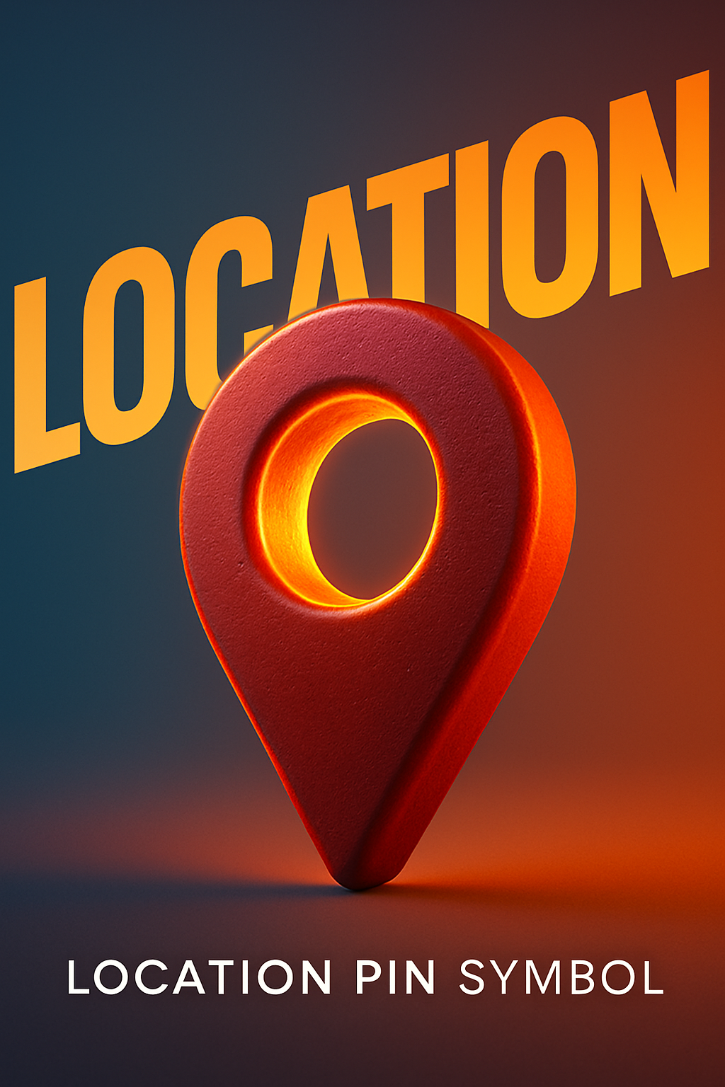 /Collection: /by davooda/Type: PNG/A hyper-realistic 3D render of a location pin symbol, featuring glowing accents and cinematic shading. The bold, diagonal typography enhances the dynamic composition with a modern feel.