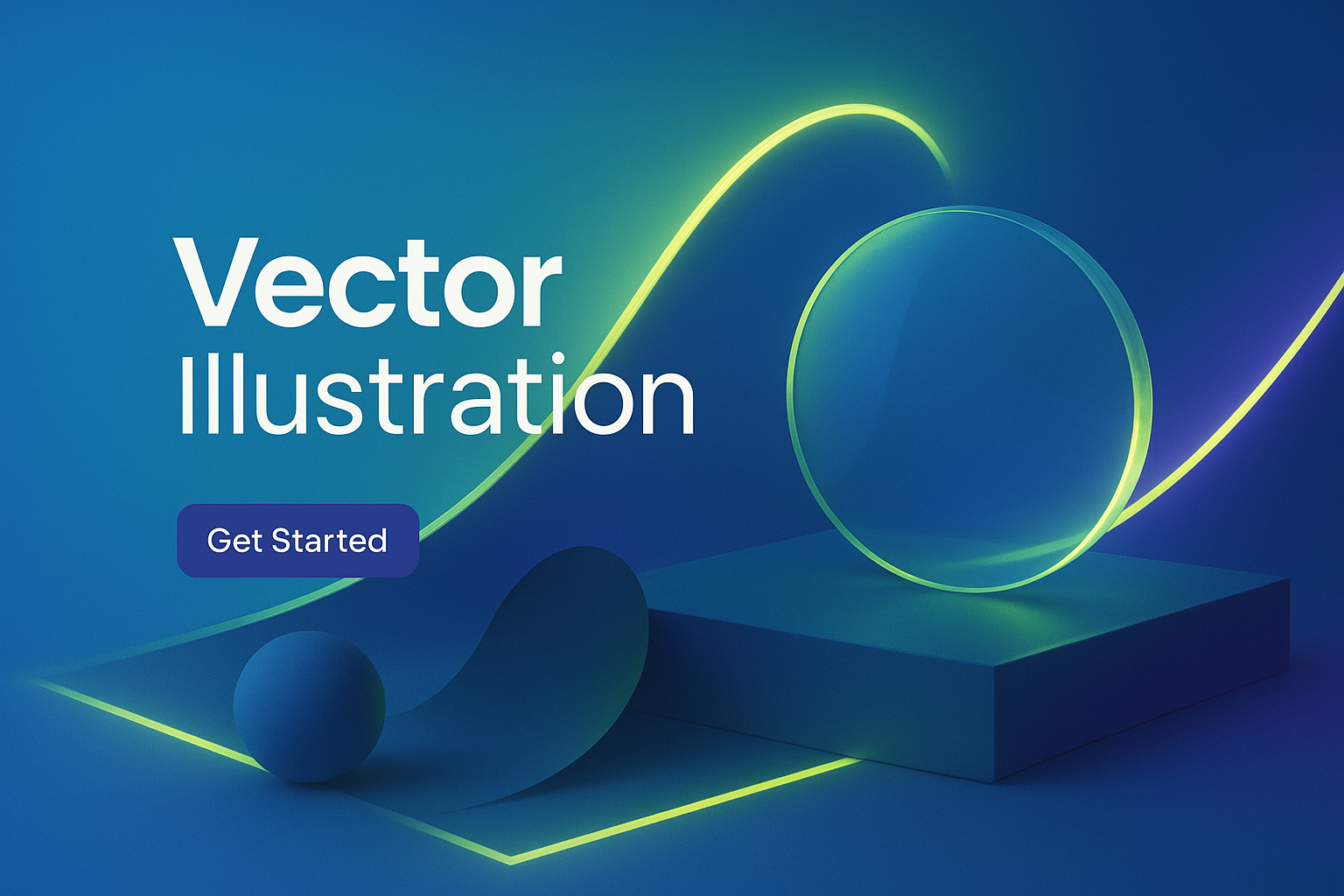/Collection: /by davooda/Type: PNG/A captivating abstract composition featuring a gradient sky blue background. The scene includes a transparent glass sphere, flowing neon lines, and geometric shapes, all subtly illuminated.