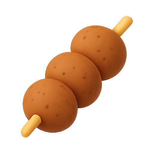 A 3D illustration of three meatballs on a skewer, showcasing a realistic texture and appealing design. Ideal for food-related marketing or culinary content.