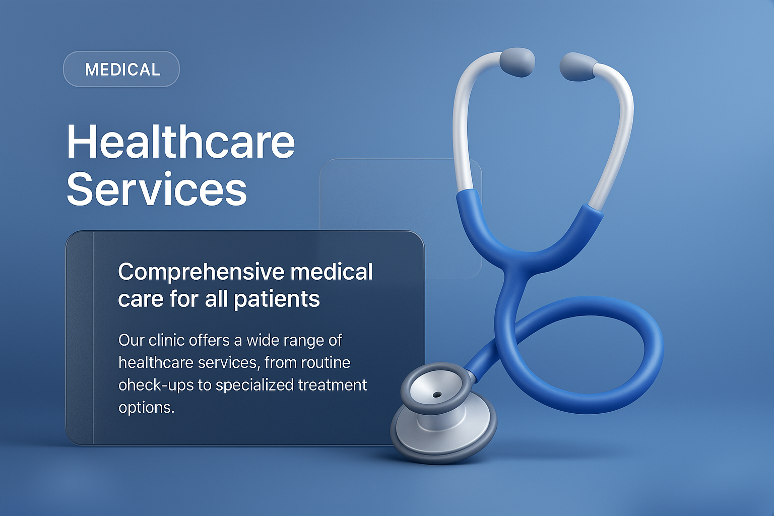 /Collection: /by davooda/Type: PNG/A modern 3D illustration showing a stethoscope against a gradient blue background. The design includes text blocks highlighting healthcare services, emphasizing a professional and clean aesthetic.