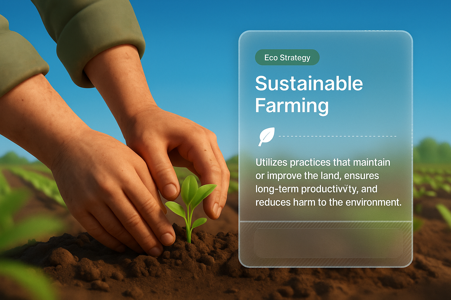 /Collection: /by davooda/Type: PNG/A close-up view of a farmer's hands planting a seedling in a lush, green agricultural field. The image emphasizes sustainable farming practices, showcasing the importance of eco-friendly methods.