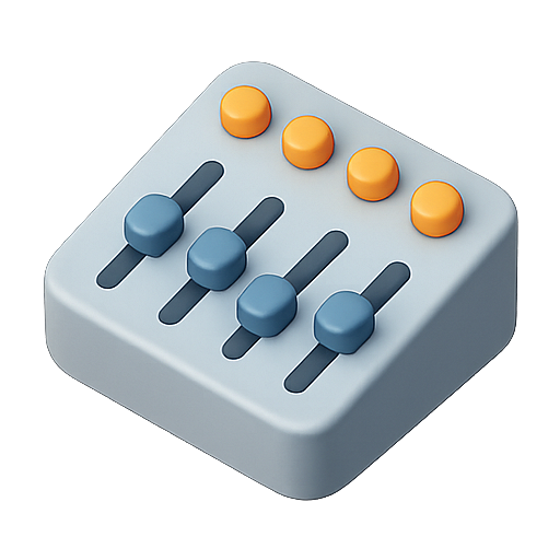 Stylized 3D icon representing an audio mixer with sliders and buttons, suitable for music production applications or audio editing software.