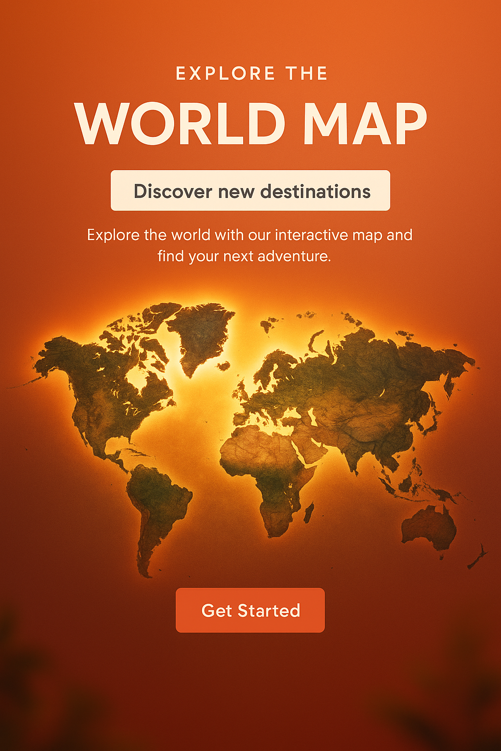 This social media post features an illuminated world map with a warm background, inviting users to explore new destinations. Ideal for travel-related promotions.