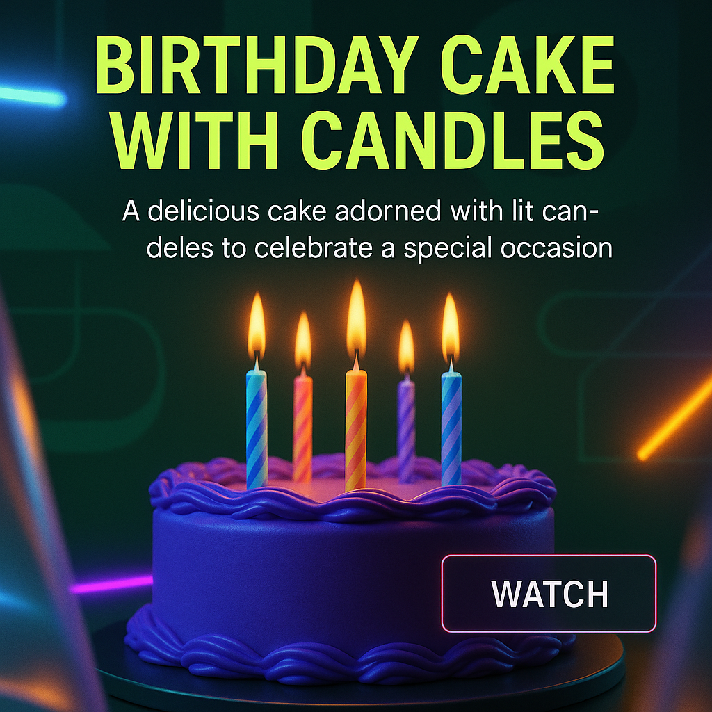 Festive Birthday Celebration Graphic Featuring Cake and Candles