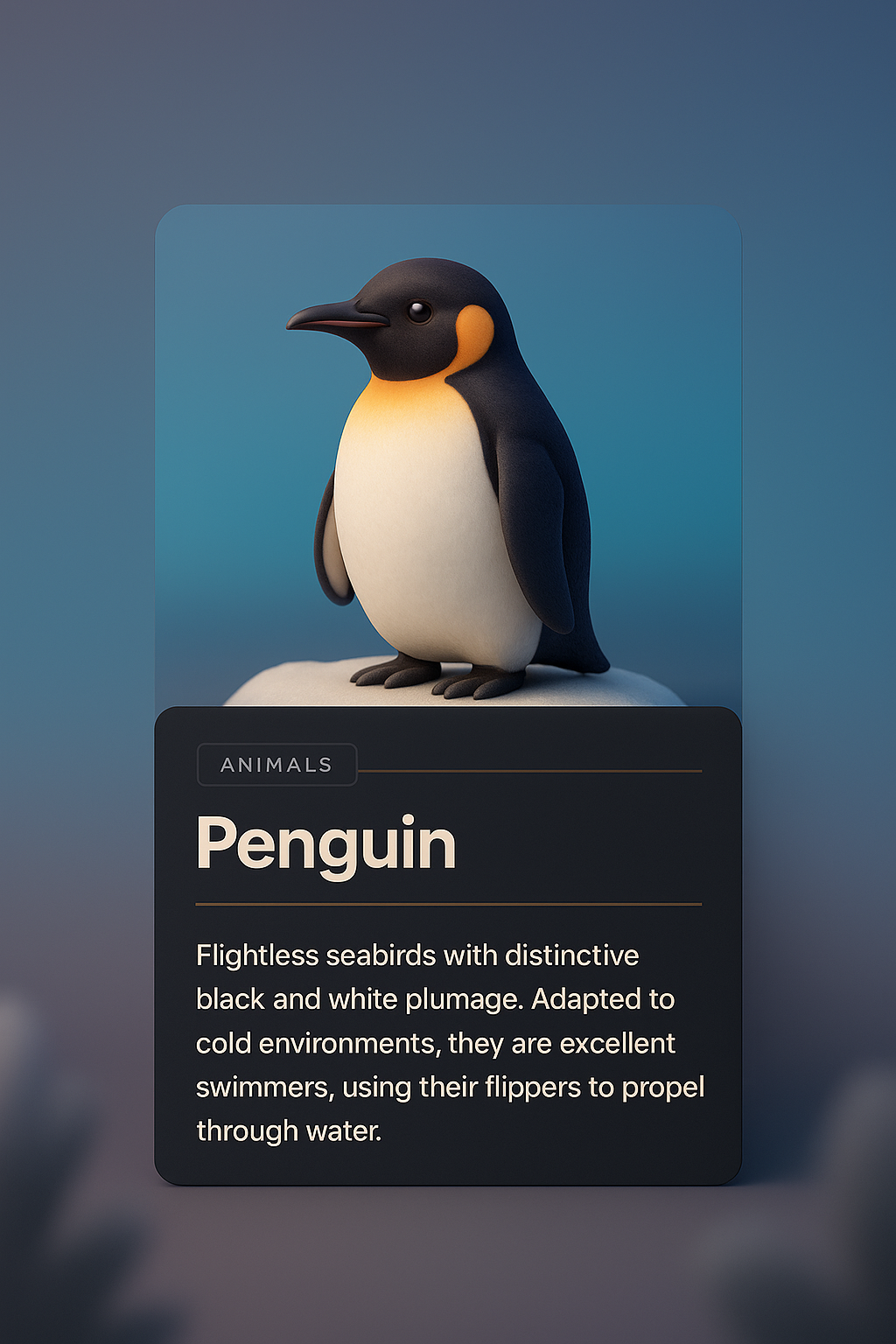 Bright 3D Penguin Illustration with Informative Text Blocks