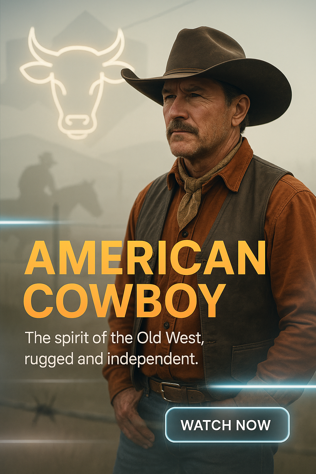 Engaging promotional banner showcasing a rugged cowboy figure, embodying the spirit of the Old West. Ideal for marketing related to Western themes or media.