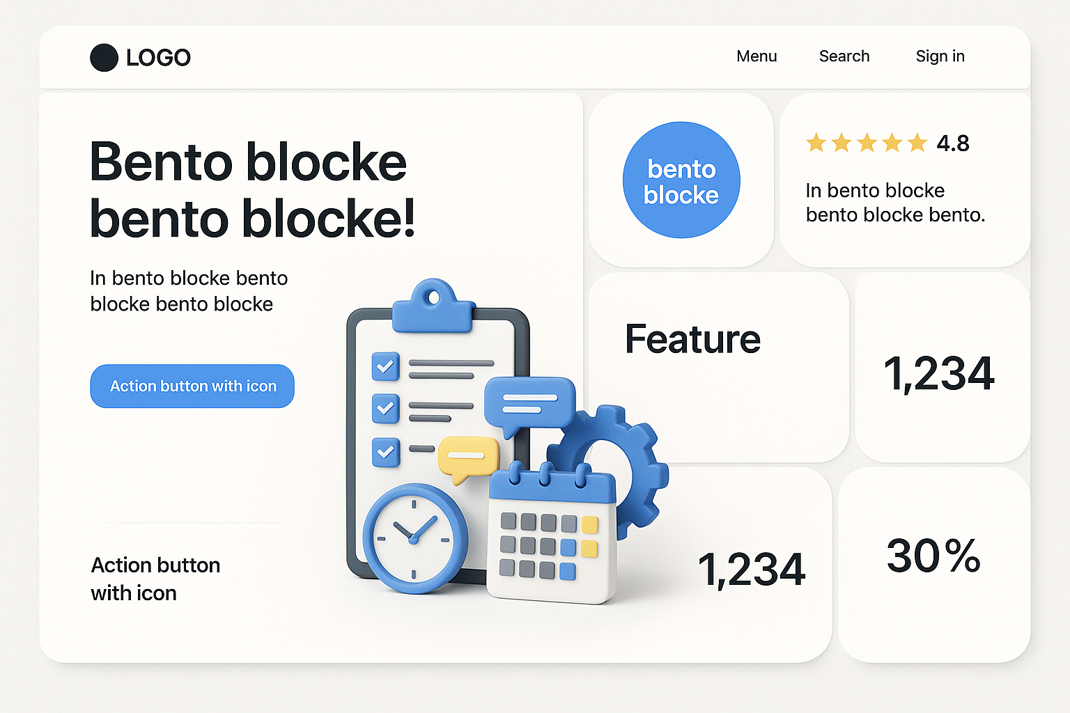 Modern Bento Landing Page Design with Clean Layout